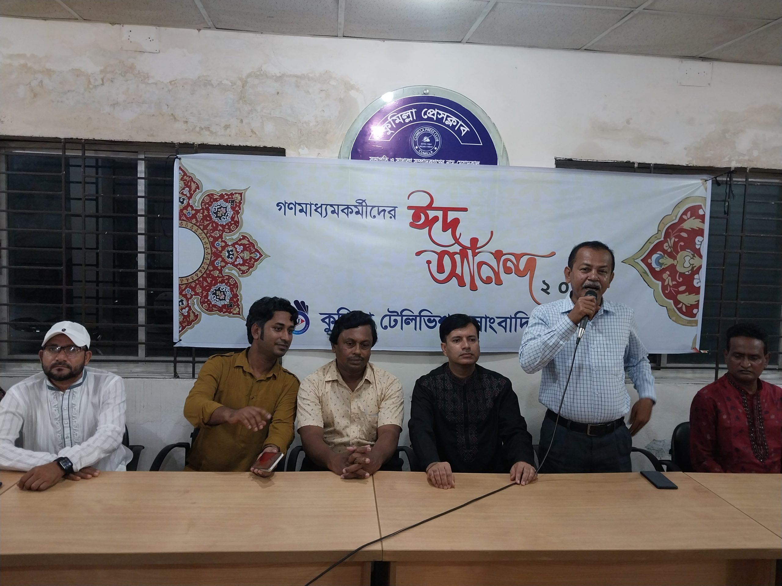 তাপস চন্দ্র সরকার, কুমিল্লা : “কর্মের মাঝেই গণমাধ্যম কর্মীদের ঈদ আনন্দ” -এ শ্লোগান সামনে রেখে ঈদ আনন্দ ভাগাভাগি করে নিতে বুধবার (১২ জুলাই) সন্ধ্যায় কুমিল্লা প্রেসক্লাবে কুমিল্লা টেলিভিশন সাংবাদিক ফোরামের আয়োজনে গণমাধ্যম কর্মীদের ঈদ আনন্দ অনুষ্ঠিত হয়।