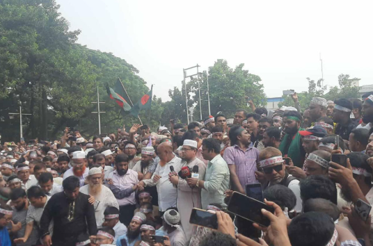 বাঙলা প্রতিদিন প্রতিবেদক: তিন দফার দাবিতে আন্দোলনরত শিক্ষকদের যমুনা অভিমুখে ‘মার্চ টু যমুনা’ বিকেল ৫টা পর্যন্ত স্থগিত ঘোষণা করেছেন শিক্ষা জাতীয়করণ প্রত্যাশী জোটের সদস্য সচিব অধ্যক্ষ দেলােয়ার হোসেন আজিজী।